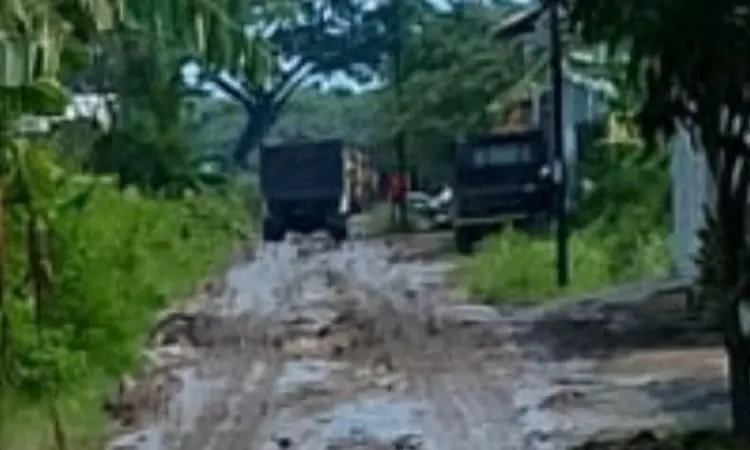 Truk-truk bermuatan material proyek disebut kerap melintas tanpa adanya pengamanan jalan yang memadai, sehingga mempercepat kerusakan.