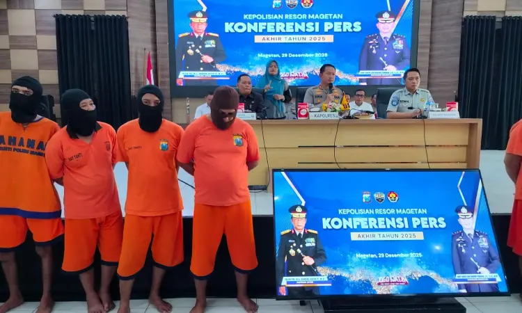 Polres Magetan mencatat penurunan angka kriminalitas selama tahun 2025, dibarengi keberhasilan pengungkapan kasus-kasus menonjol seperti perampokan minimarket hingga penipuan koperasi. Data ini disampaikan dalam rilis akhir tahun yang digelar di Mapolres Magetan, Senin (29/12/2025).