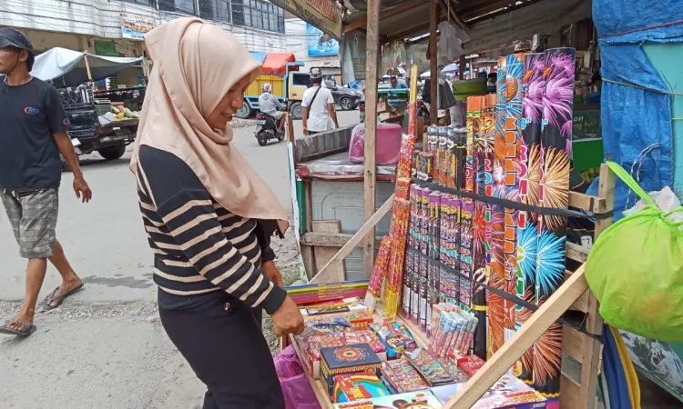 Endang, pedagang lainnya, mengaku telah berjualan kembang api selama enam tahun terakhir. Dia menawarkan berbagai jenis kembang api dan terompet dengan beragam ukuran dan model.